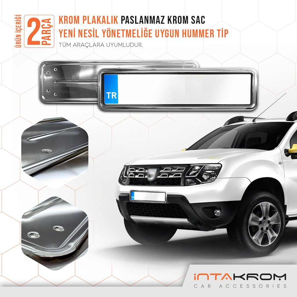 Aracınıza modern bir dokunuş kazandırın! Dacia Duster için özel olarak tasarlanan bu Hummer Tip krom plakalık seti, estetik tasarımı ve dayanıklı yapısıyla aracınızı bir üst seviyeye taşıyor.
